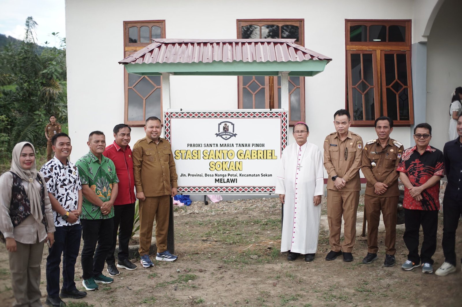 Bupati Melawi, H. Dadi Sunarya Usfa Yursa bersama Uskup Sintang, Mgr. Samuel Oton Sidin, O.F.M. Cap. meresmikan Gereja Katolik Santo Gabriel Stasi Sokan di Desa Nanga Potai, Kecamatan Sokan, Senin (25/11/2024).