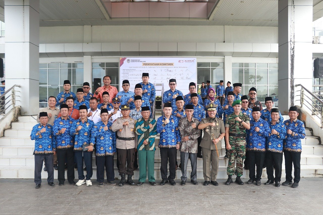 Pada kesempatan ini juga dilangsungkan acara launching Core Values ASN Ber-AKHLAK di lingkungan Pemerintah Kabupaten Melawi yang ditandai dengan pembacaan nilai-nilai dasar ASN BerAKHLAK dan penandatanganan komitmen untuk menerapkan nilai-nilai yang ada pada Core Values ASN BerAKHLAK oleh seluruh Kepala Perangkat Daerah di lingkungan Pemerintah Kabupaten Melawi.